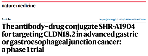 尊龙凯时Ag医药CLDN18.2 ADC创新药SHR-A1904治疗胃癌临床研究结果荣登Nature Medicine