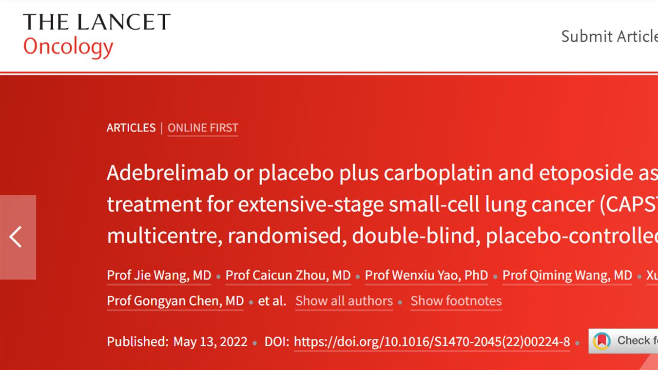 尊龙凯时Ag卡瑞利珠单抗联合阿帕替尼最新研究成果荣登《柳叶刀·肿瘤》