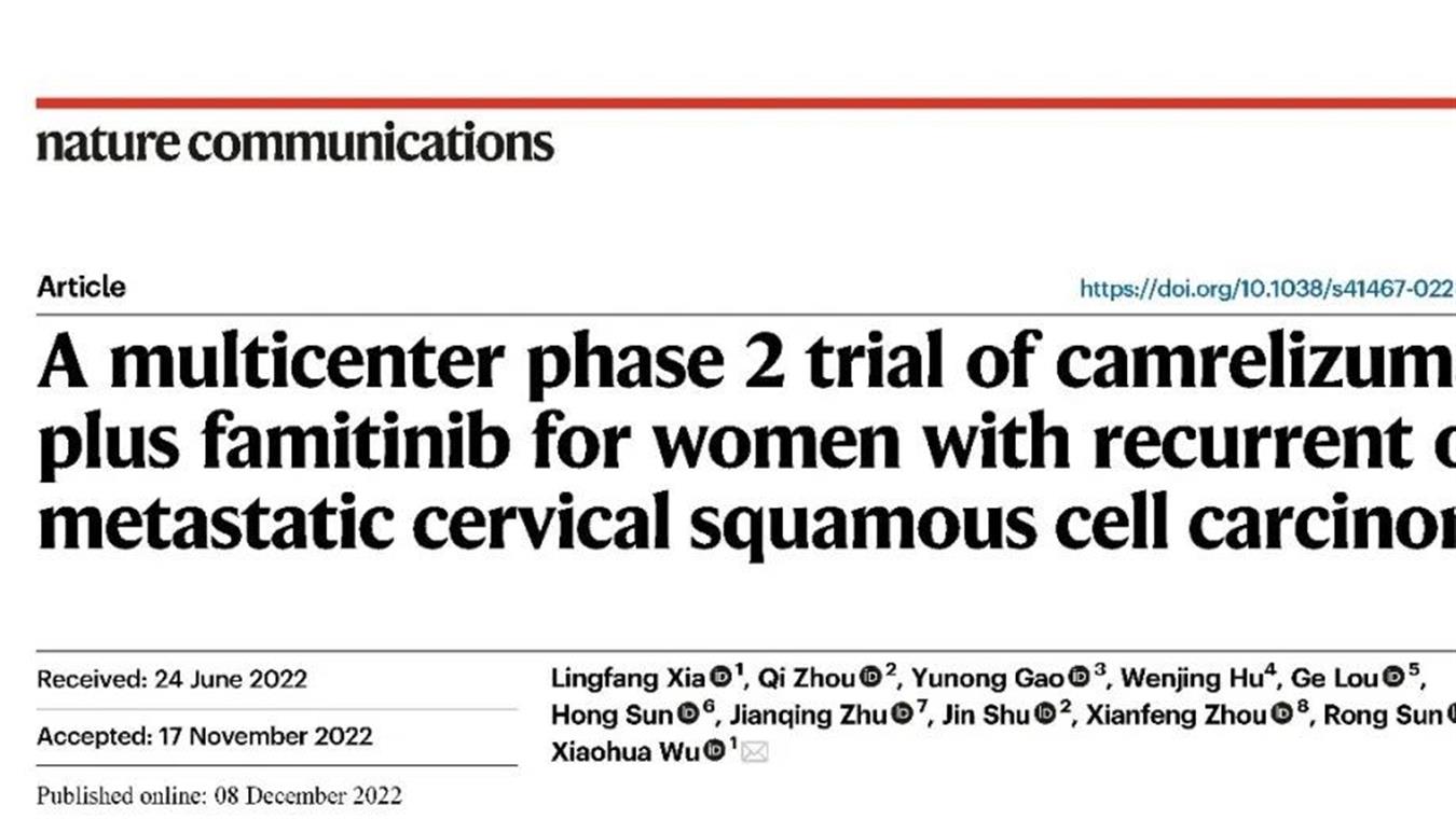 尊龙凯时Ag创新药卡瑞利珠单抗联合法米替尼用于复发或转移性宫颈癌研究结果荣登JCO